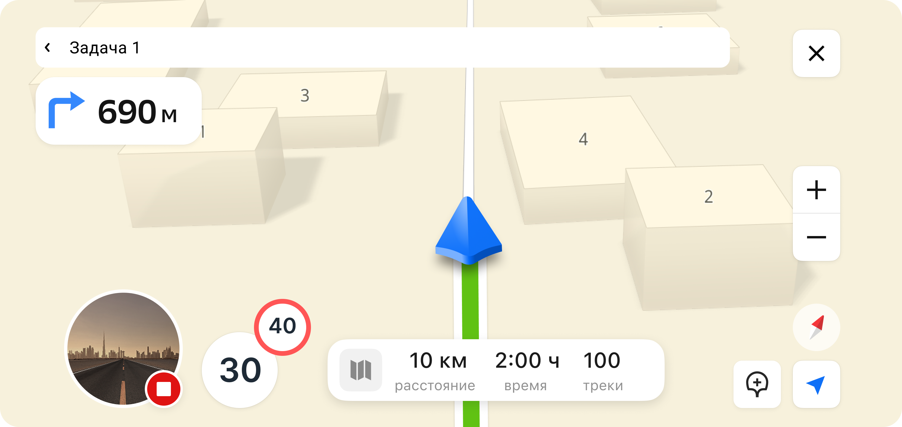 . Вы сможете возобновить навигацию в любой момент с любого места на карте: приложение пересчитает маршрут в соответствии с новыми условиями.