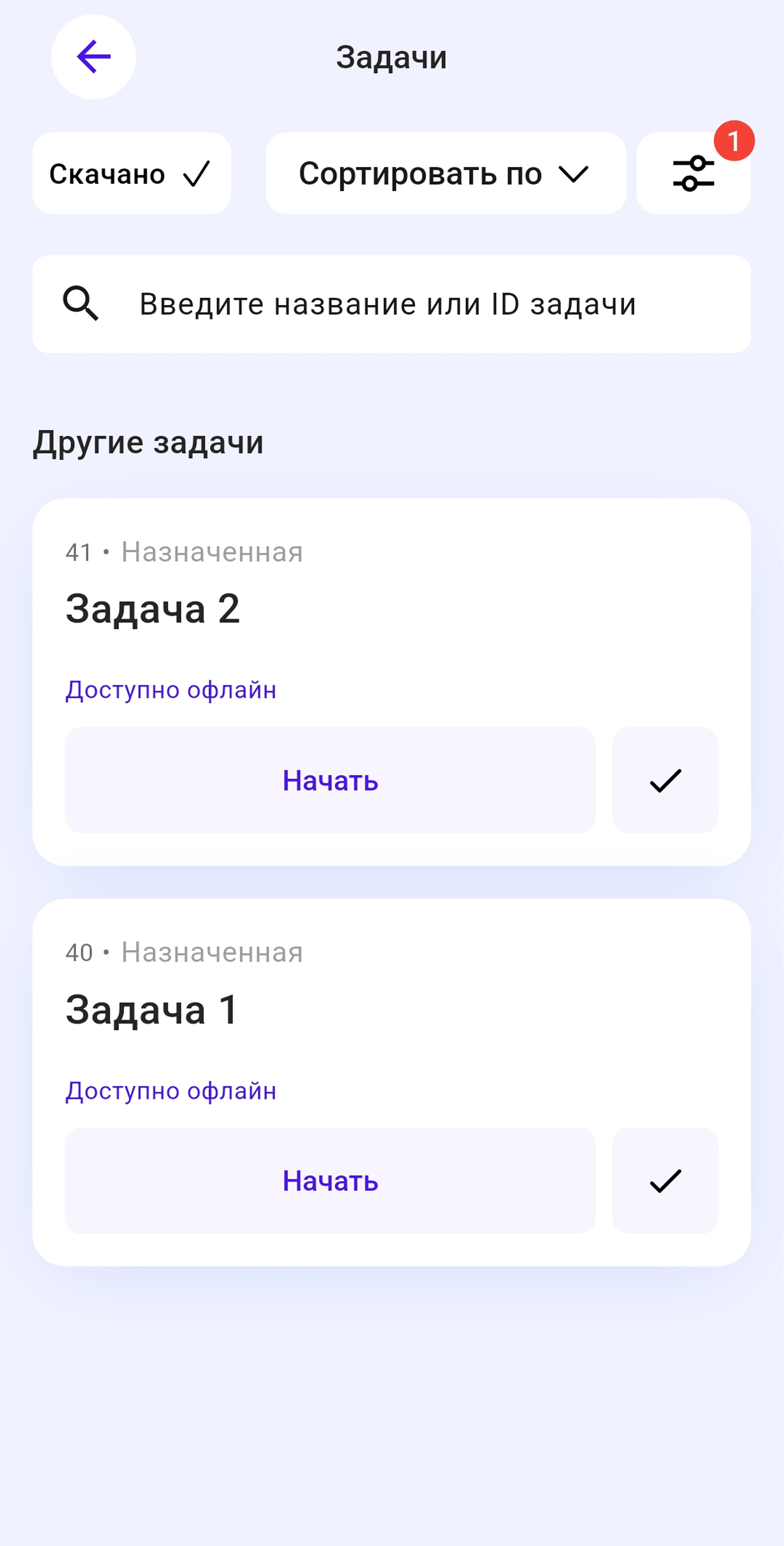 (Рекомендуется) Чтобы не зависеть от качества связи во время объезда и работать с задачами без подключения к интернету, вы можете заранее скачать их. Чтобы скачать задачу, в карточке задачи нажмите значок