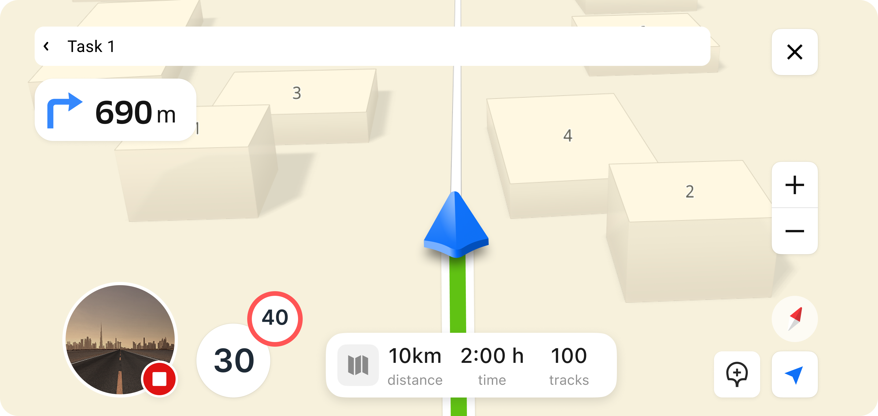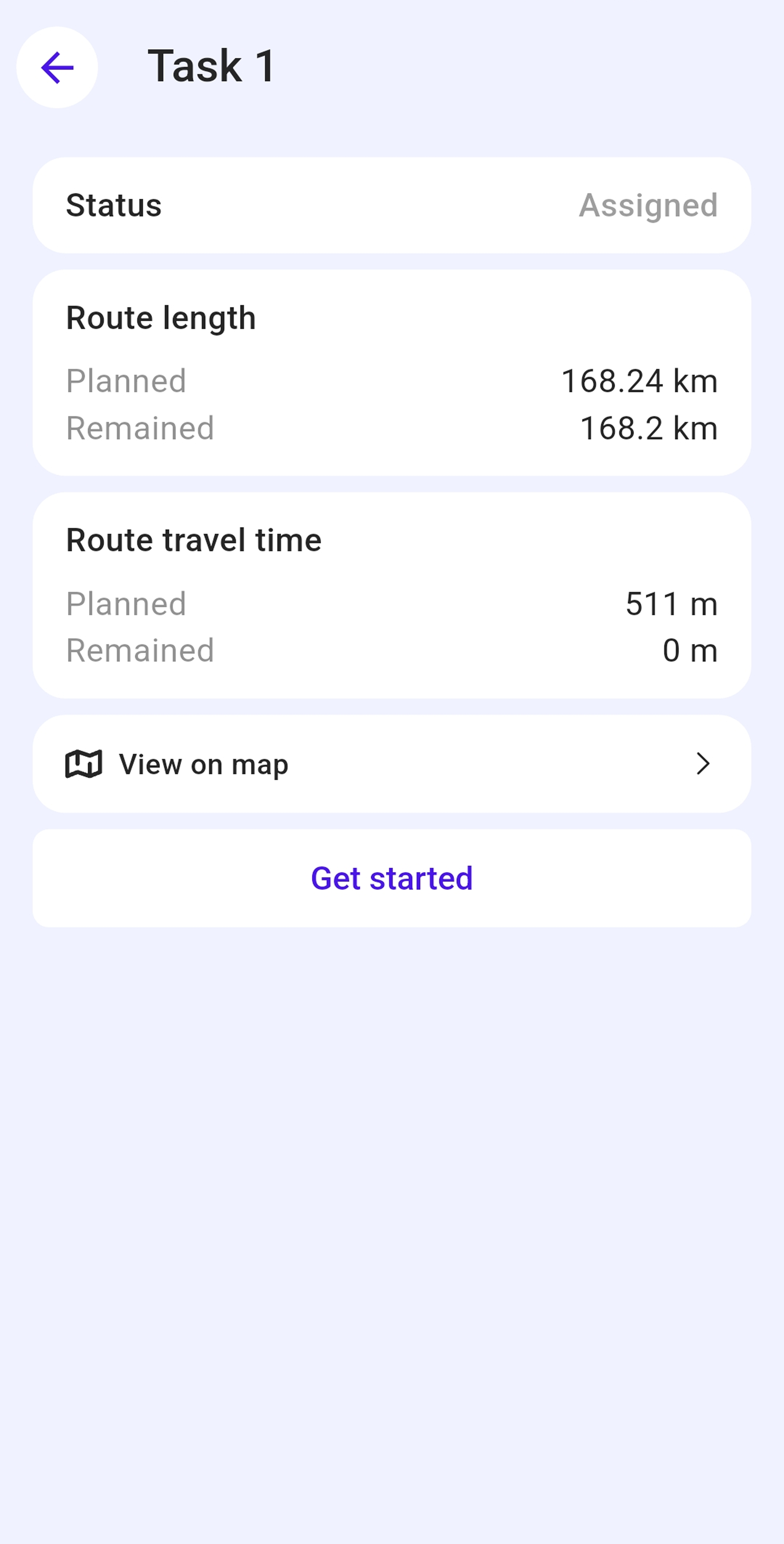 In the opened card, you can view the task status and statistics, and also see the full route on the map. Check the information and tap Get started. The video recording launches.