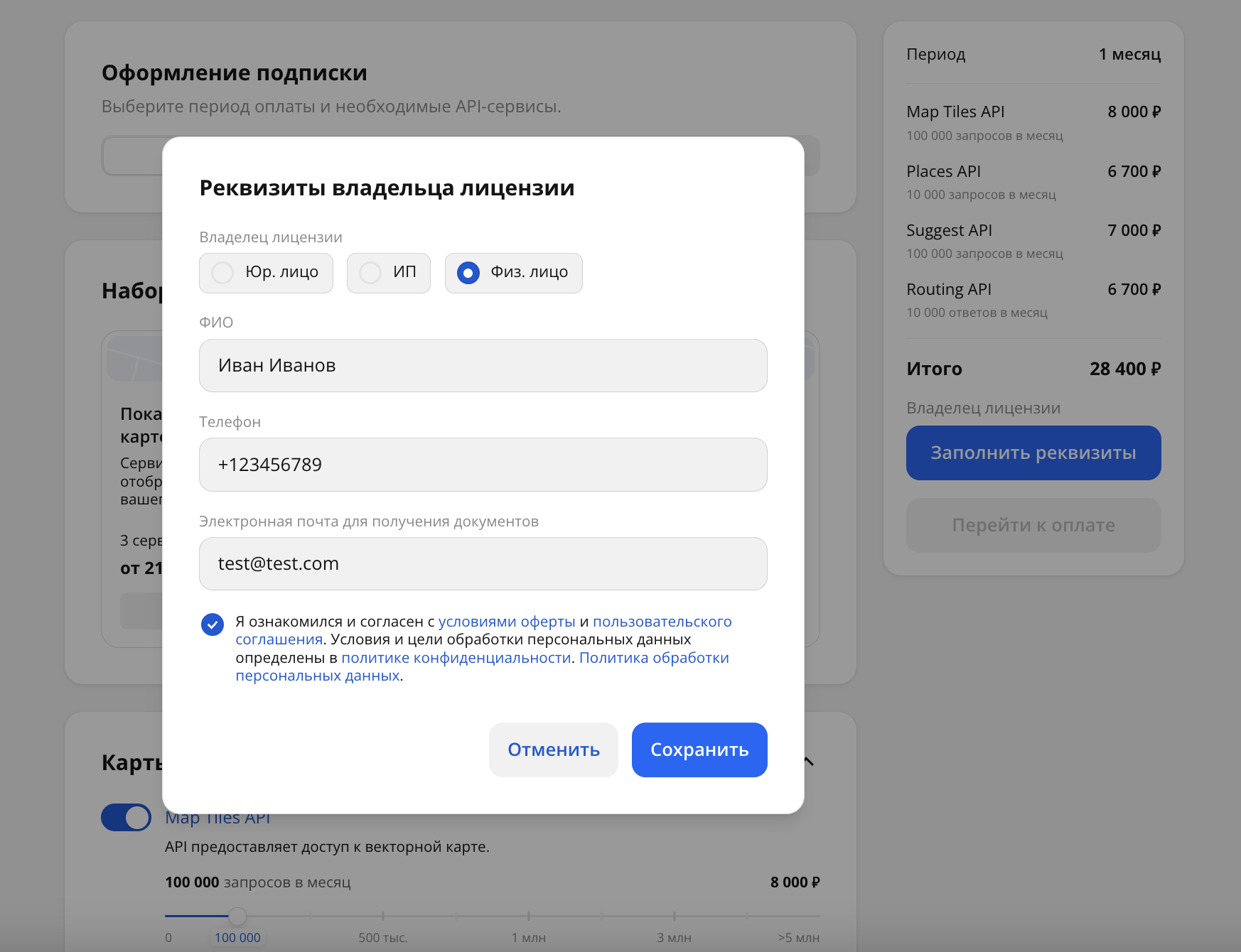 Отметьте чекбокс о согласии с условиями оферты и пользовательского соглашения и нажмите Сохранить.