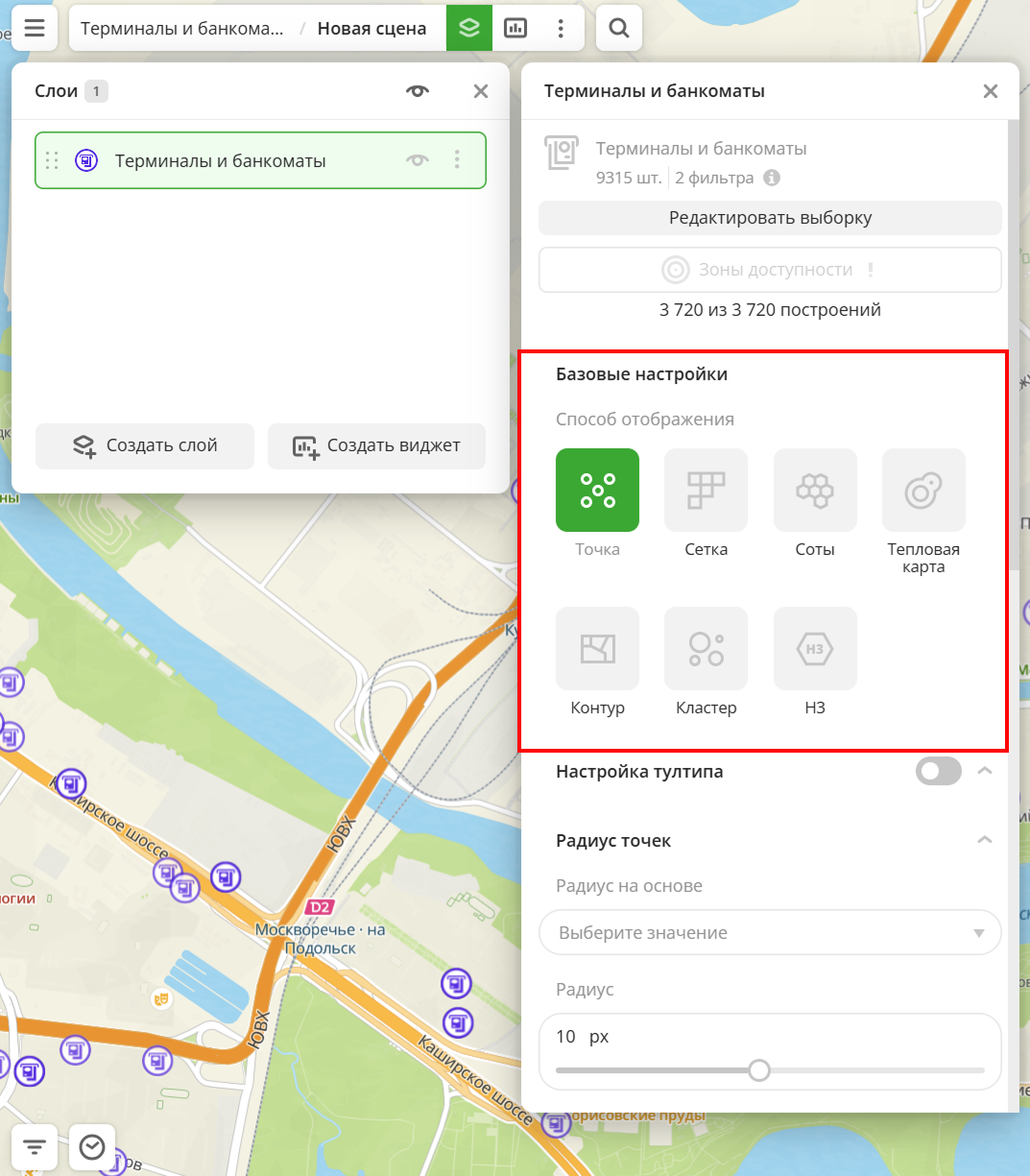 Чтобы сохранить данную выборку, нажмите Создать слой и настройте визуализацию данных.