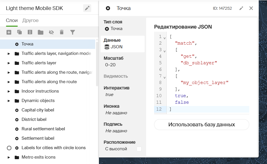 Источники данных бывают разных типов: движущиеся маркеры, маршруты с отображением текущей загруженности дорог, произвольные геометрические фигуры и т. д. Для каждого типа данных существует свой класс.