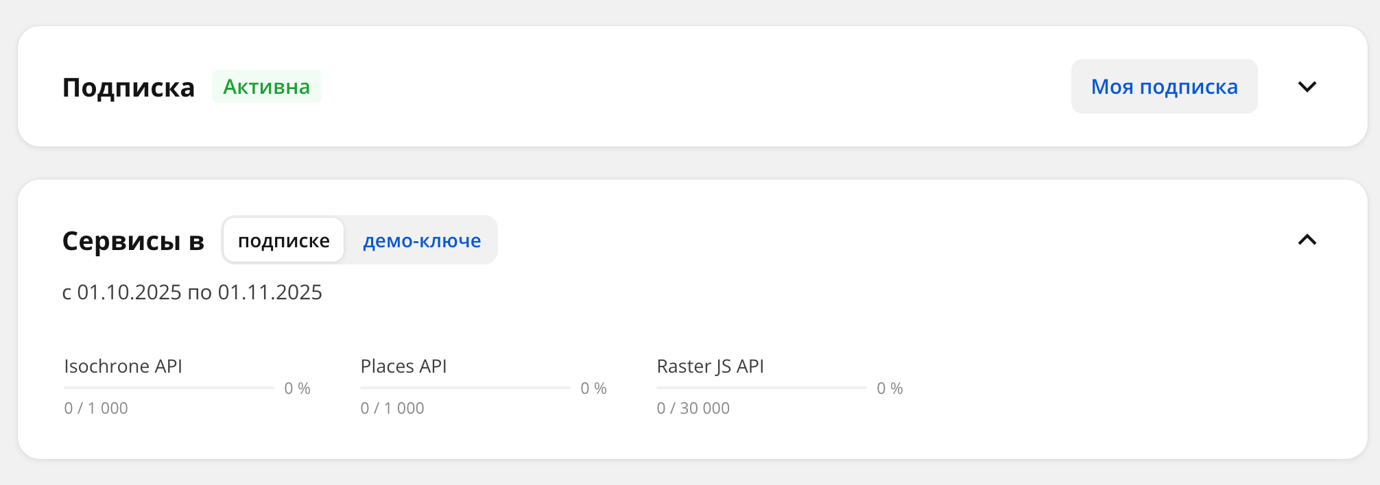 Если лимит использования сервиса превышен, работа API-ключа будет приостановлена до начала следующего месяца.